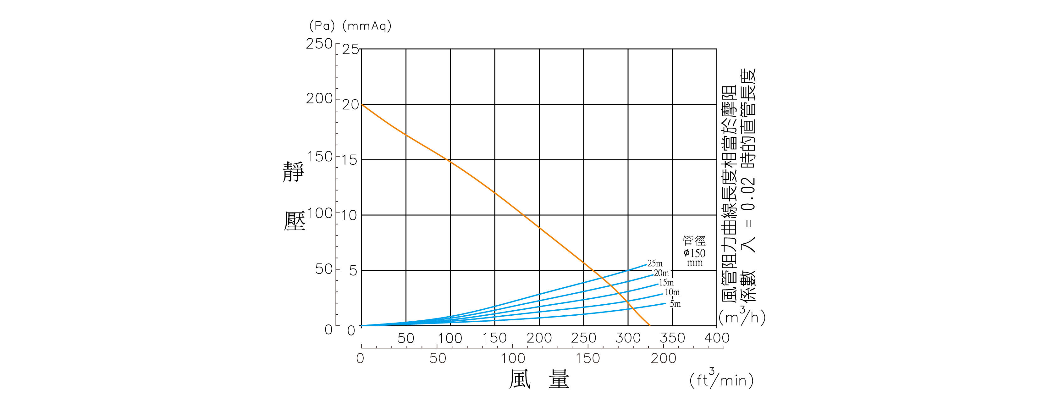 | 靜壓 (mmAq) | 20 | 18 | 15 | 12 | 9 | 6 | 2.5 | 1 | 0 |