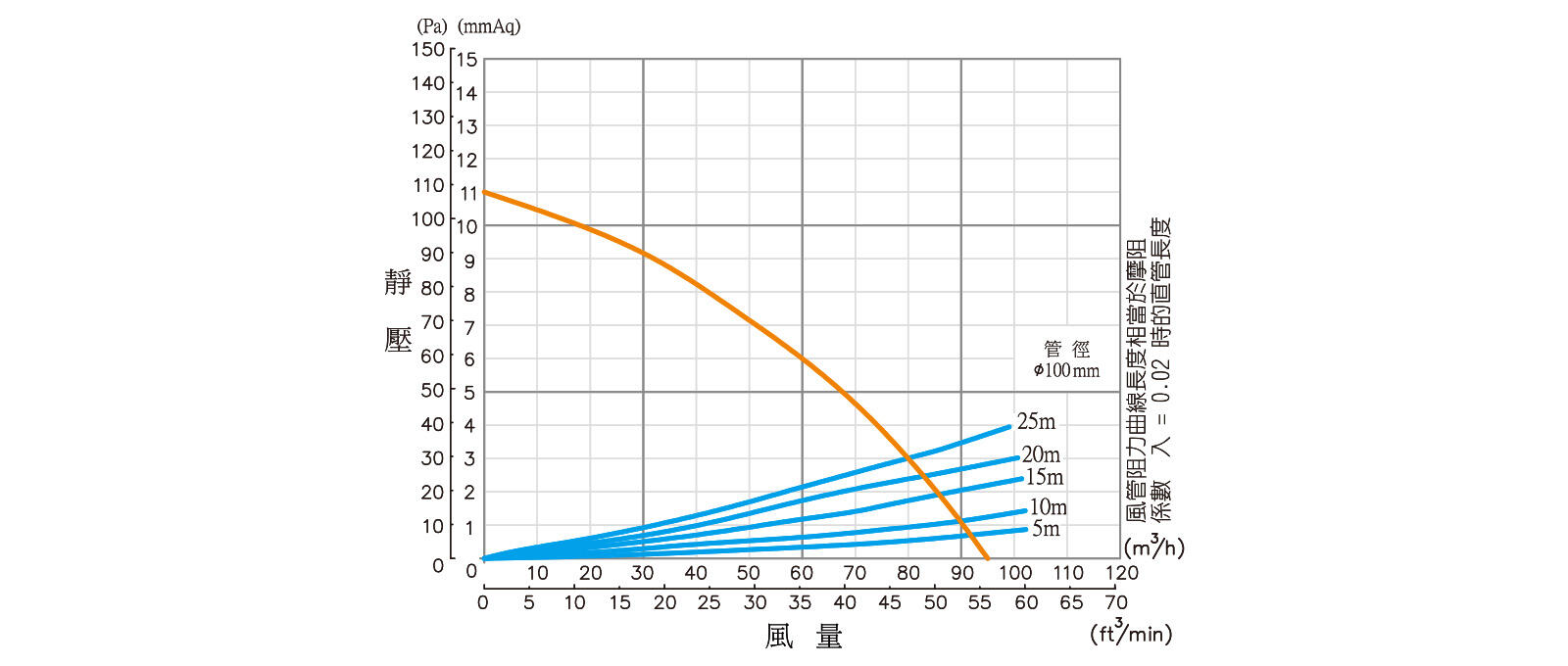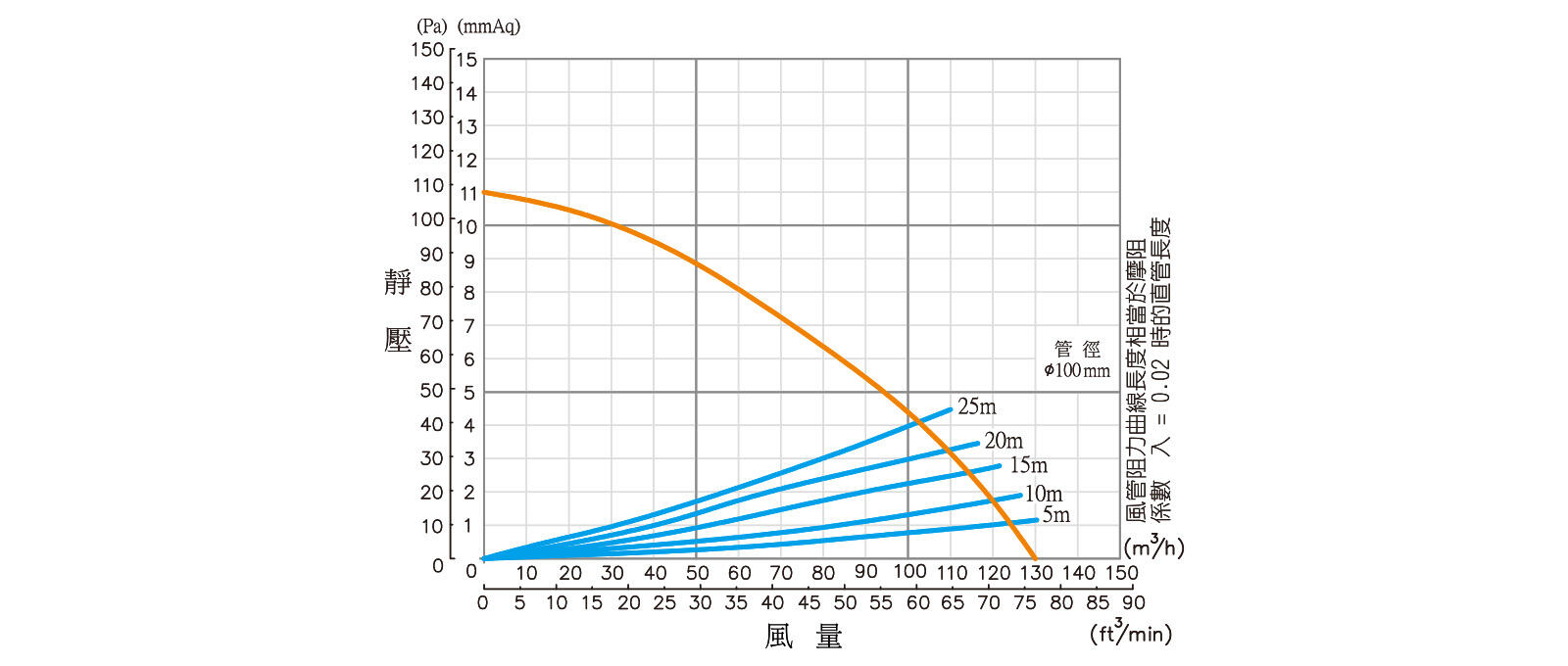 | 風量 (m3/h) | 0 | 18 | 32 | 47 | 60 | 71 | 80 | 88 | 96 |