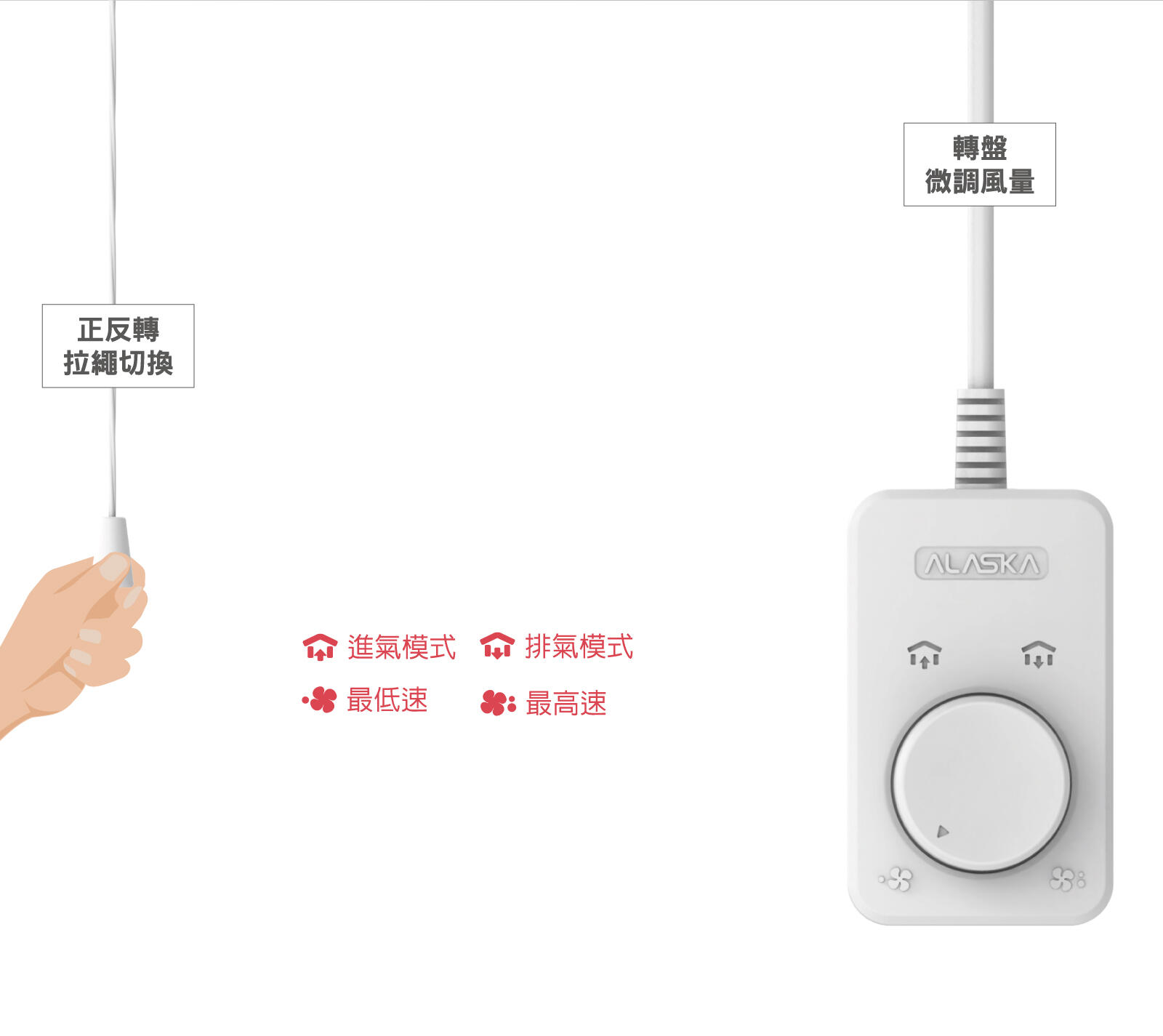 搭配旋鈕式無段風量控制,可依實際需求自由調整風量大小,進排氣皆能精準掌控,兼顧舒適與效率。