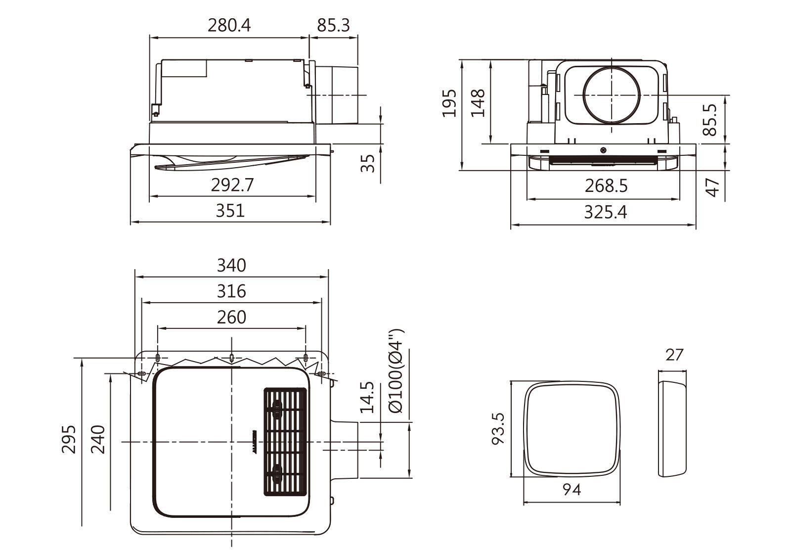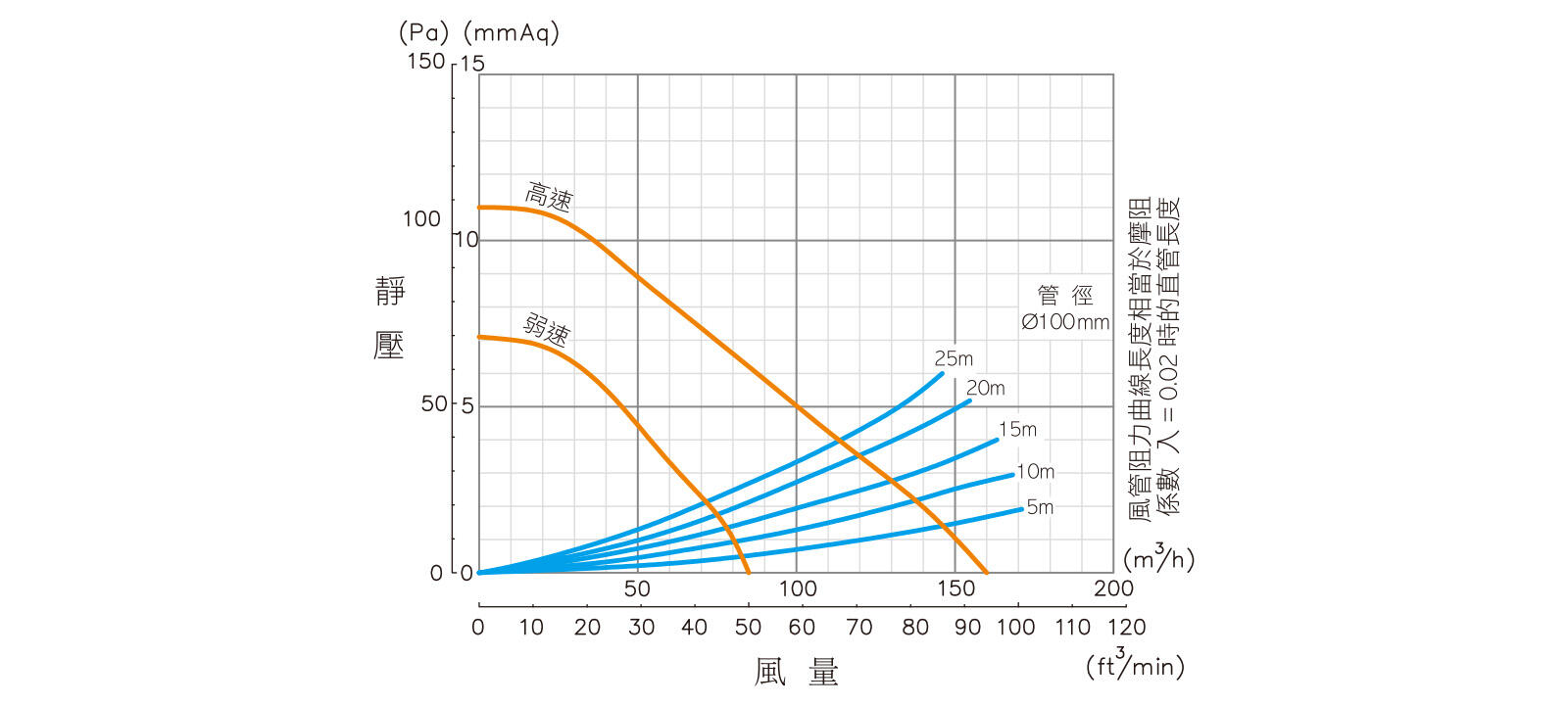 | 出風口尺寸 (mm) | Ø100 (4吋) | |||||||