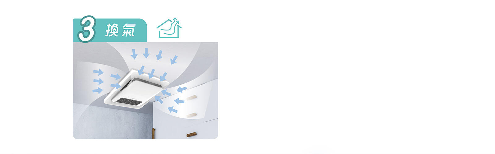 適用於飯廳、浴廁、辦公室、玄關、寵物房、衣帽間、安養長照機構、潮濕空間等,通風不良、人員眾多及需要除菌、換氣、送風的場所。