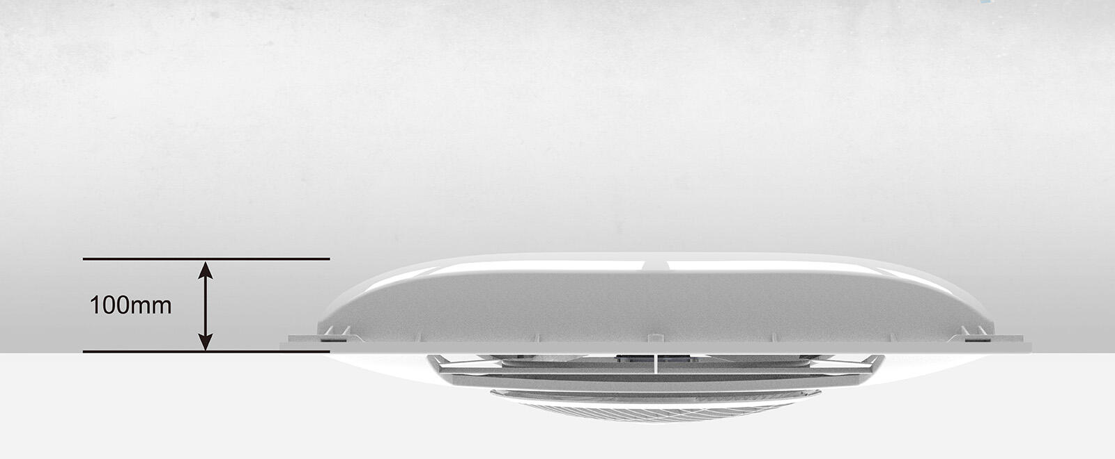 超薄機身的改版能大幅減低安裝高度,避免天花板過低所形成的壓迫感。