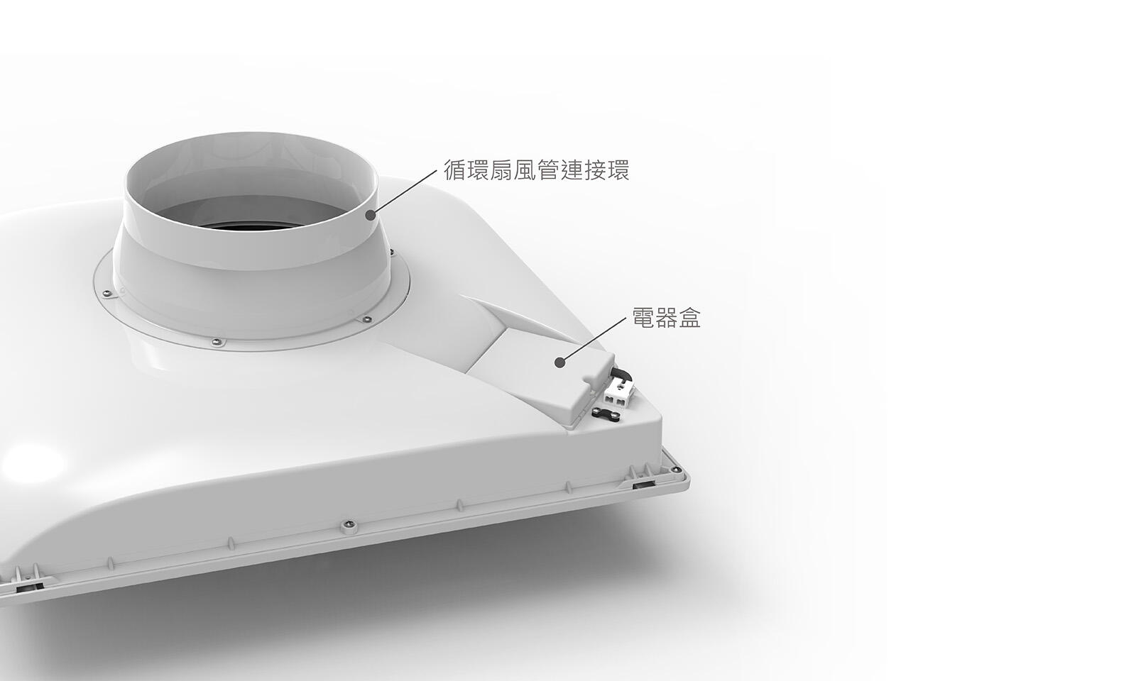 電器盒及風管連結環使用阻燃級ABS,安全把關,使用更安心。