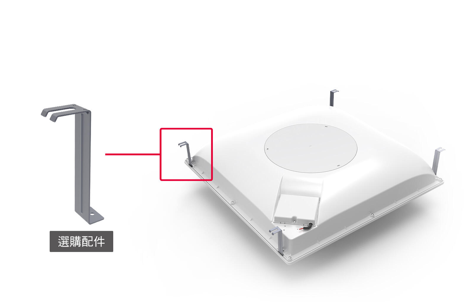 可選購循環扇懸吊座,搭配螺桿安裝,沒有輕鋼架也能靈活安裝於天花板,隨享鮮活空氣。