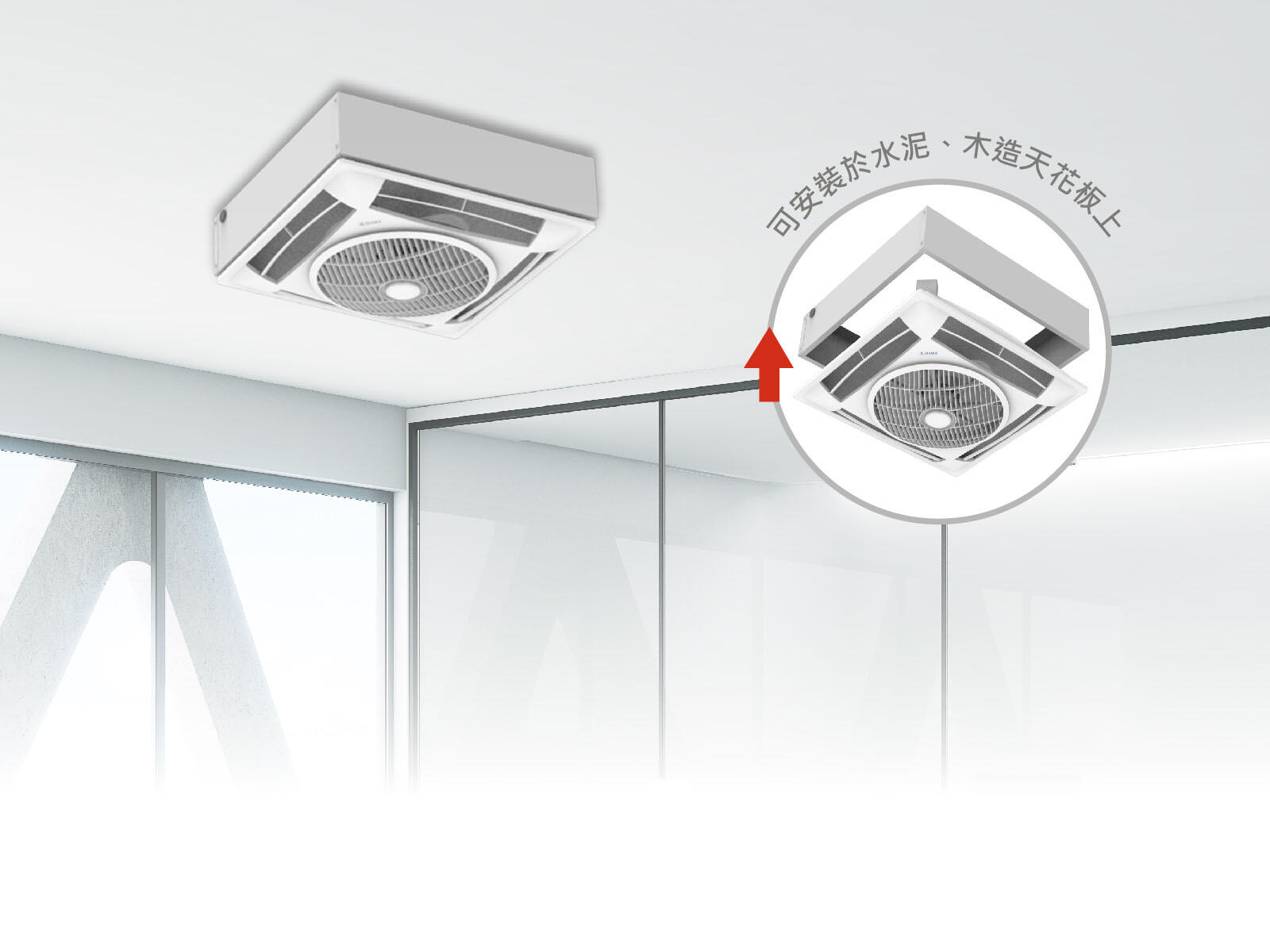 空氣對流循環降溫,空調搭配ALASKA輕鋼架節能循環扇359系列,將舒服涼風傳遞每一處,各種輕鋼架、天花板(可加裝固定座)皆可快速簡易配置,為各式空間帶來全方位改善與提升。