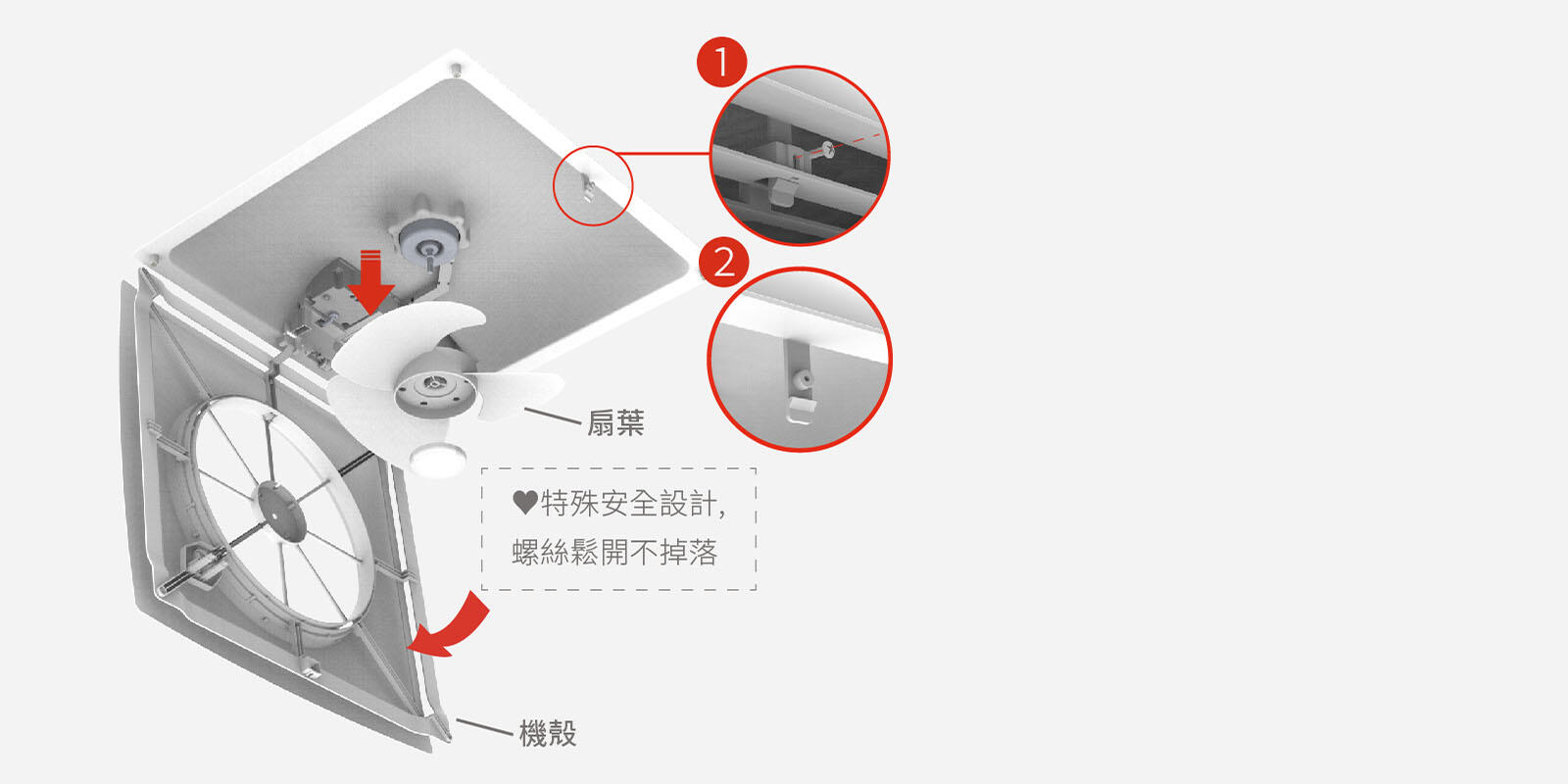 貼心靜音功能,最合適於辦公室,運轉時不干擾工作狀態,體貼柔風也不會吹亂辦公室桌面,安裝於天花板,更能讓地面使用空間更為寬廣舒適。