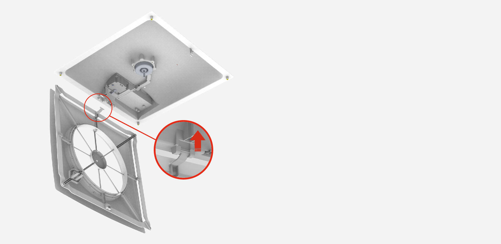 方形固定座能讓輕鋼架循環扇快速而且簡易的安裝於木造、水泥等相關材質天花板,輕鋼架循環扇全系列產品皆適用此配件。