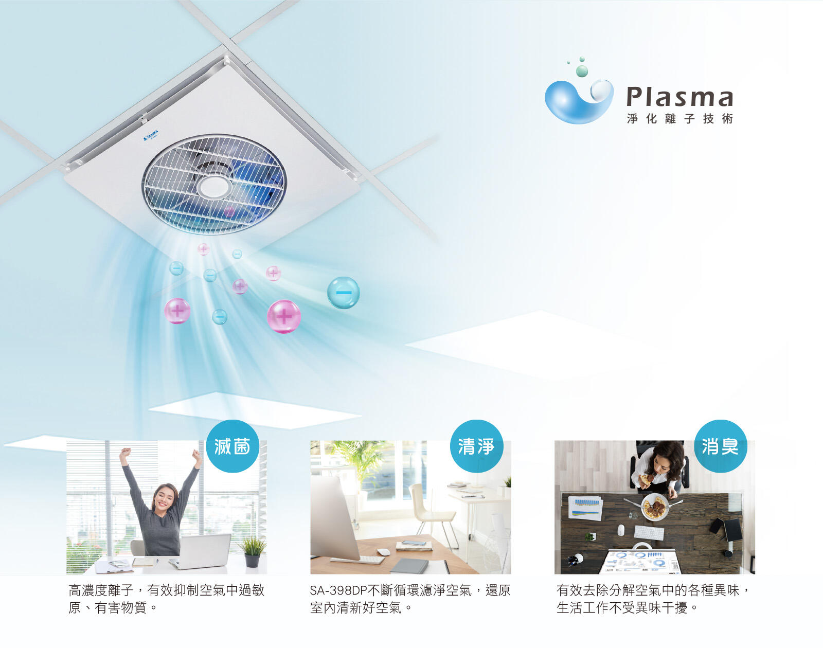 ALASKA將多年研究的Plasma淨化離子技術,搶先運用於輕鋼架節能循環扇中,全效抑制有害物質,再將乾淨的空氣循環送至室內每一處。